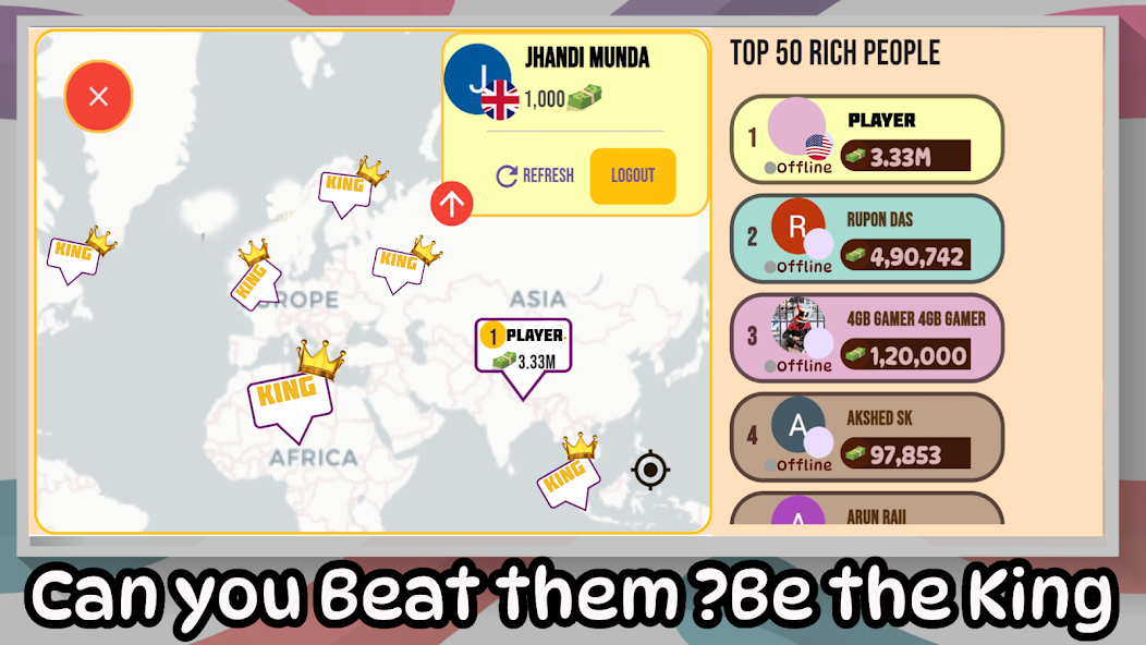 Jhandi Mundi also known as dabbu khela and be the King on leaderboard.